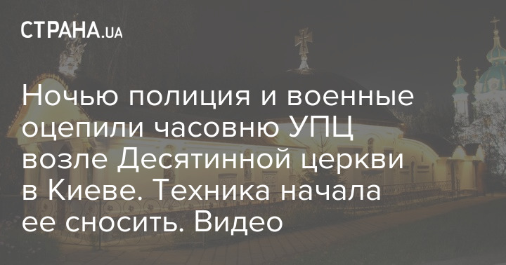 Владимиро-Ольгинскую часовню УПЦ около места Десятинного храма в Киеве оцепили полиция и военные. На месте работает техника, которая начала сносить часовню.