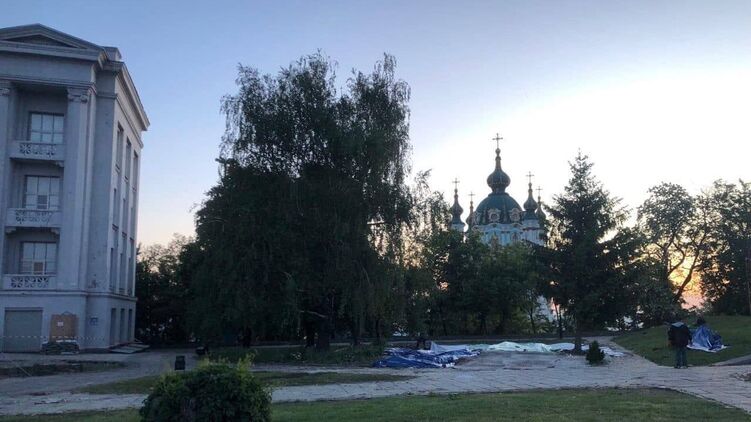 Утром 17 мая появились кадры после сноса Владимиро-Ольгинской часовни УПЦ в Киеве.