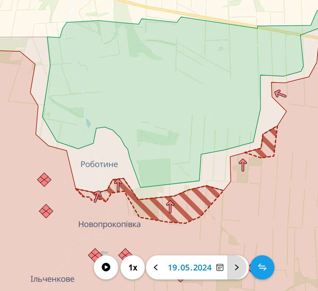 К западу от Волчанска россияне заняли новые территории на правом берегу Северского Донца, севернее недавно захваченной Бугроватки. Россияне говорят, что РФ атакует село Прилипка к западу от Волчанска, пытаясь прорваться на левый берег Донца и приблизиться к частичному окружению Волчанска.