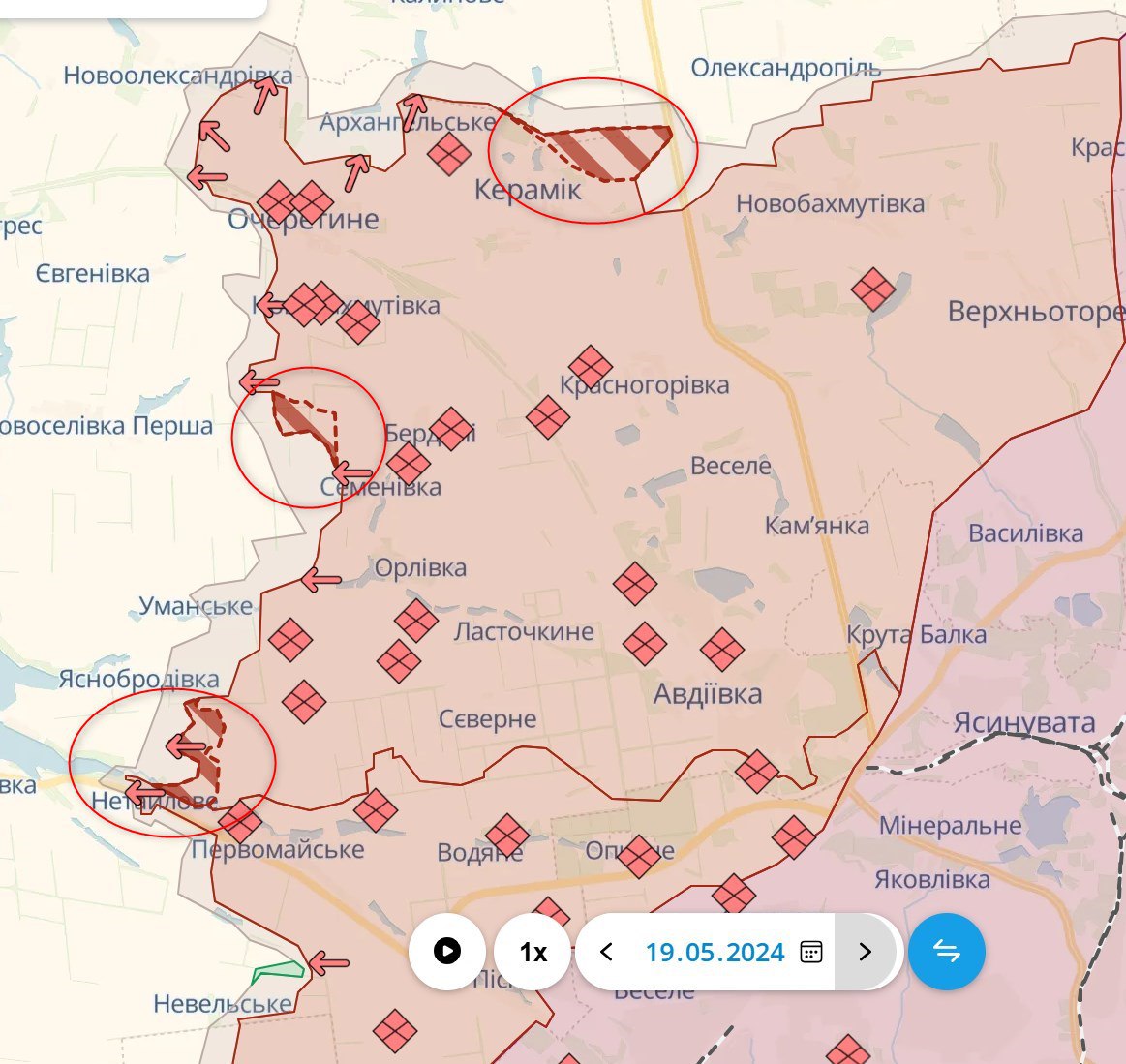Под Авдеевкой РФ захватила новые территории к северу от Нетайлово (к западу от Авдеевки и Донецка), к югу от Очеретино и возле Керамика.