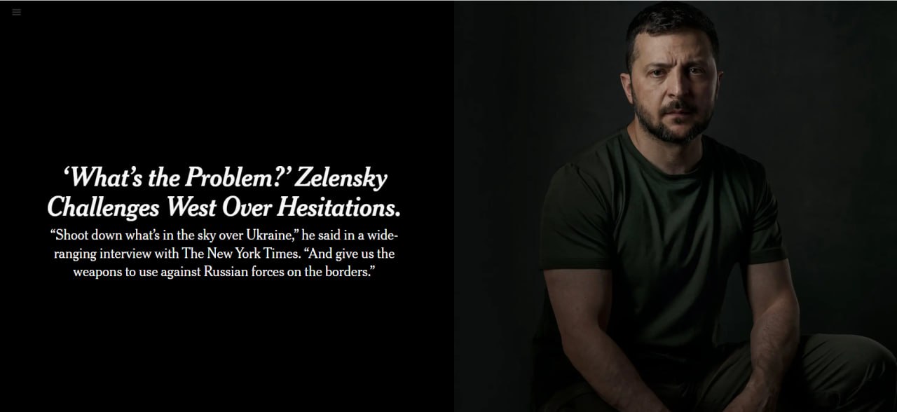 17:53 Зеленский в интервью The New York Times снова призвал Запад дать разрешение бить его оружием по территории РФ и сбивать российские ракеты.