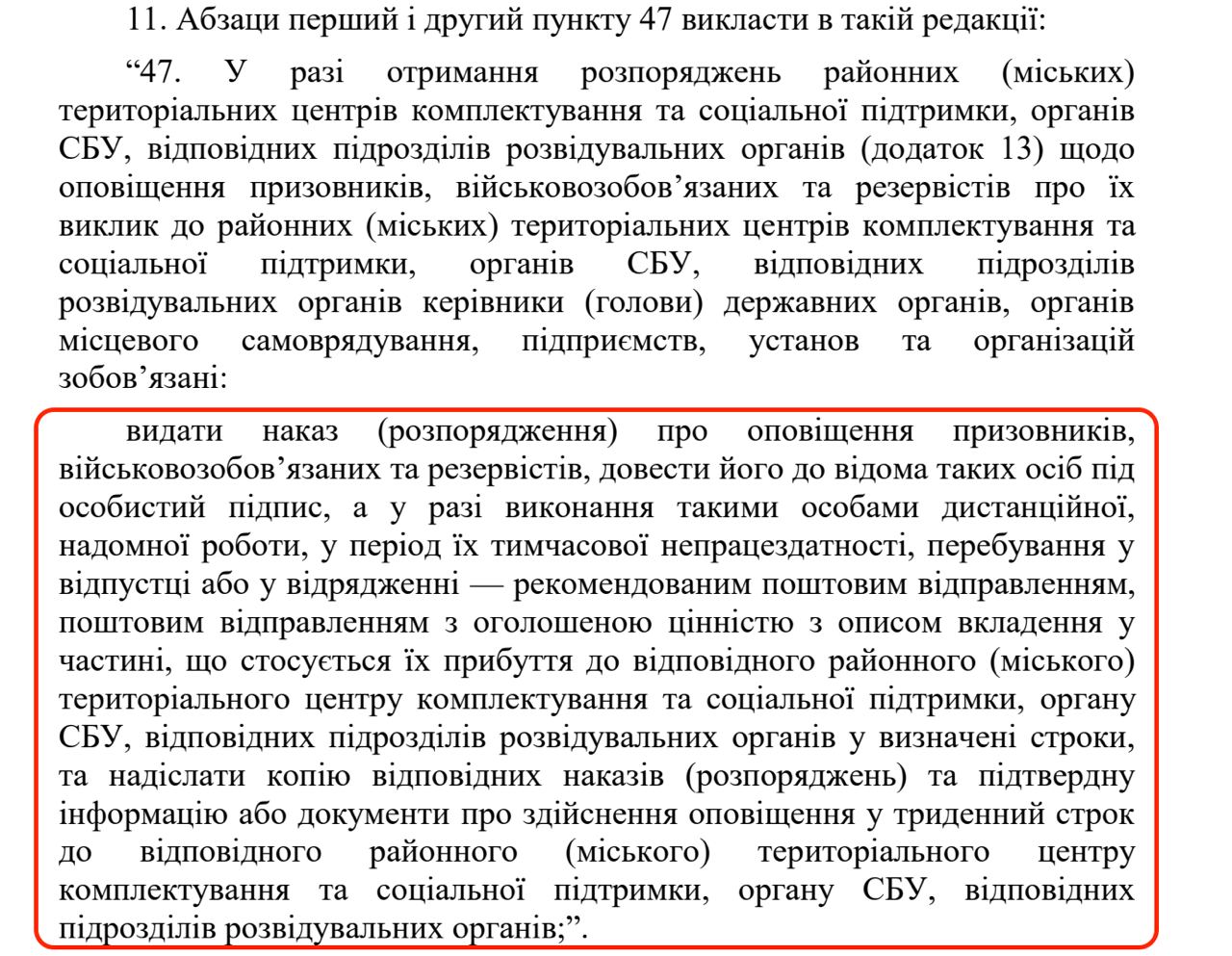 "Руководители предприятий, учреждений, организаций ... обеспечивают прибытие резервистов и военнообязанных путем их перевозки от предприятия (учреждения, организации) к пунктам сбора районных (городских) территориальных центров комплектования и социальной поддержки или воинских частей или освобождение их от выполнения обязанностей с учетом времени, необходимого для прибытия в территориальный центр комплектования и социальной поддержки, и в случае необходимости времени на