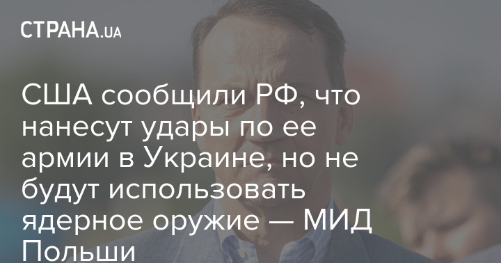 США сообщили РФ, что нанесут удары по ее армии в Украине, но не будут использовать ядерное оружие — МИД Польши