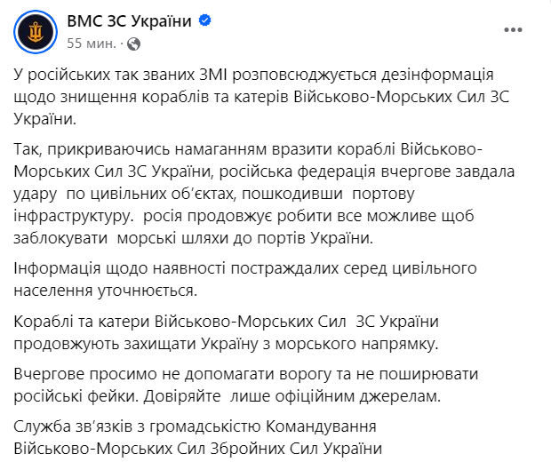 15:22 Россияне нанесли удар по портовой инфраструктуре, сообщают Военно-Морские Силы ВС Украины.