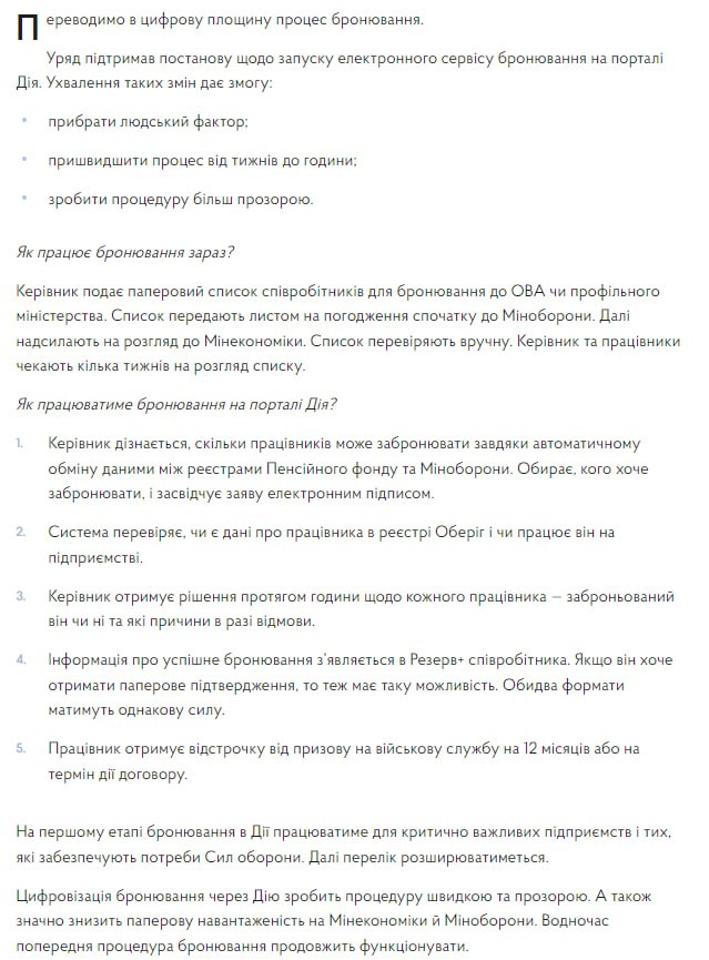 6. На первом этапе бронирования в "Дие" будет работать для критически важных предприятий и тех, которые обеспечивают потребности сил обороны.