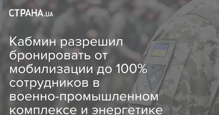 Кабинет министров Украины разрешил бронировать до 100% сотрудников в ВПК и энергетике.