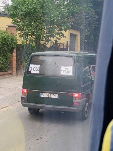 На волне этих поджогов все больше микроавтобусов клеят себе табличку "Не ТЦК". Очередное такое фото обнаружили во Львове.