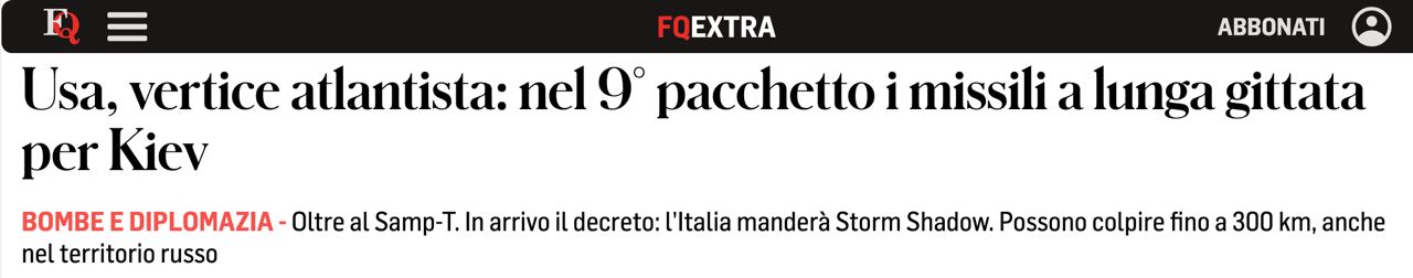 В публикации говорится, что дальнобойные ракеты наряду с системой ПВО Samp-T должны войти в следующий пакет военной помощи Рима, который будет объявлен до конца месяца.