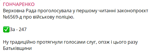 Об этом сообщил народный депутат Алексей Гончаренко в своем телеграм-канале.
