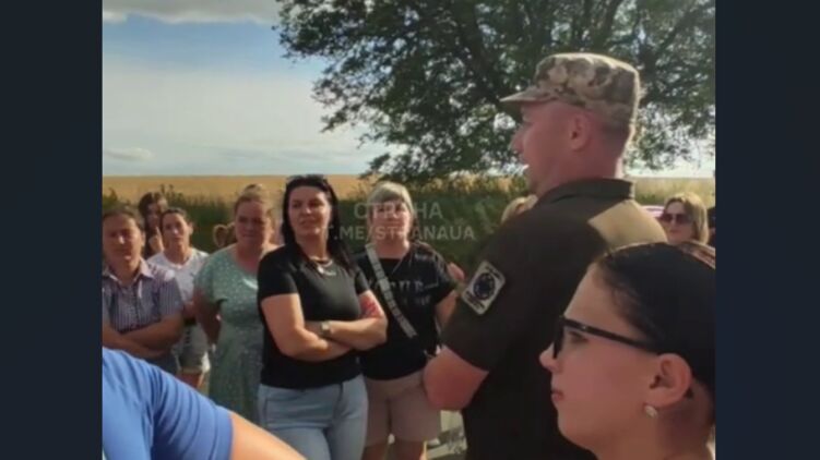 На видео толпа из женщин, а также мужчины непризывного возраста, обступили военных, которые там стоят - вероятно, представителей ТЦК либо пограничников - и спрашивают, что они здесь делают.