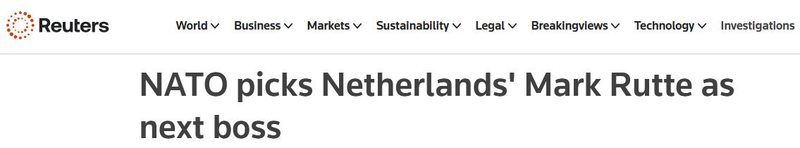 В среду, 26 июня, послы стран НАТО избрали премьер-министра Нидерландов Марка Рютте следующим главой Альянса.