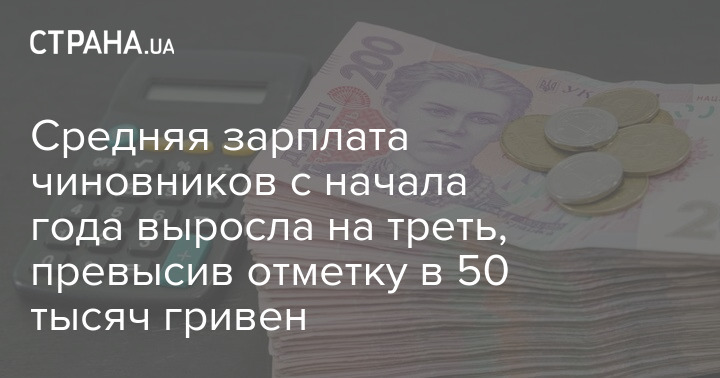 Средняя зарплата чиновников с начала года выросла на треть, превысив отметку в 50 тысяч гривен