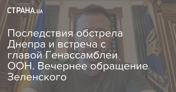 Последствия обстрела Днепра и встреча с главой Генассамблеи ООН. Вечернее обращение Зеленского