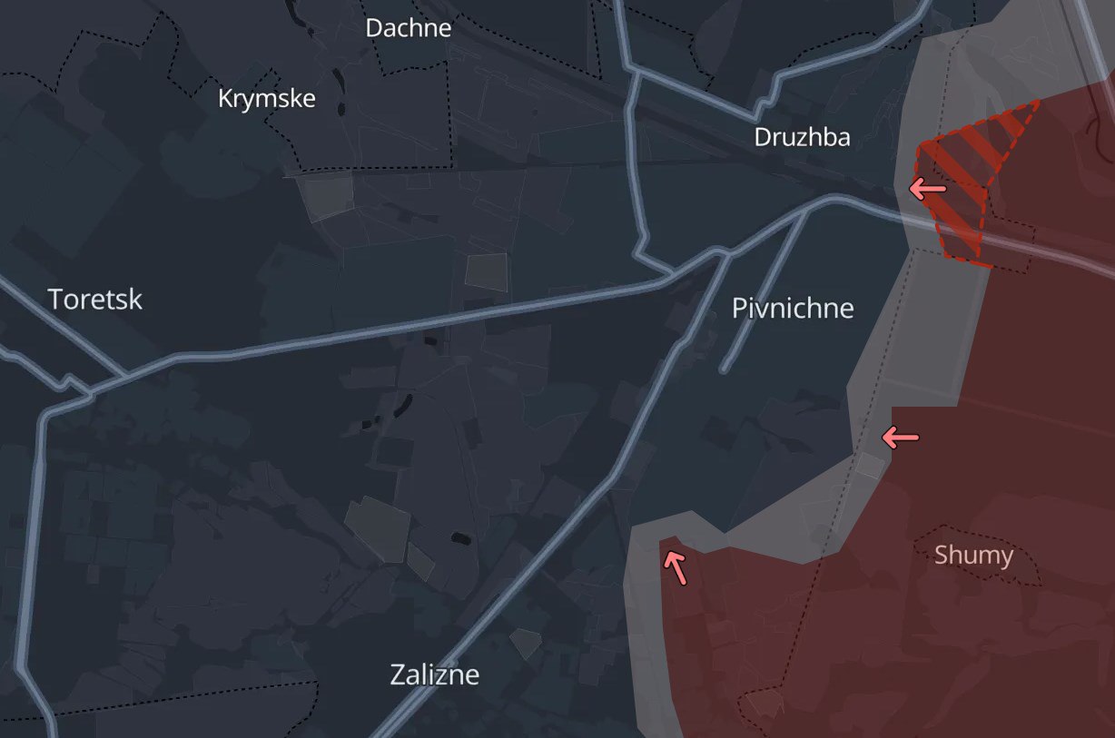 Российские войска снова продвинулись на Торецком направлении, а именно - в селе Дружба к востоку от Торецка, а также на южных окраинах Нью-Йорка.