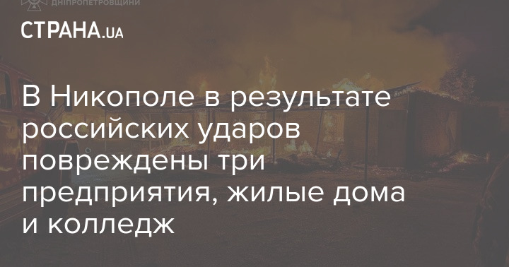 В Никополе в результате российских ударов повреждены три предприятия, жилые дома и колледж