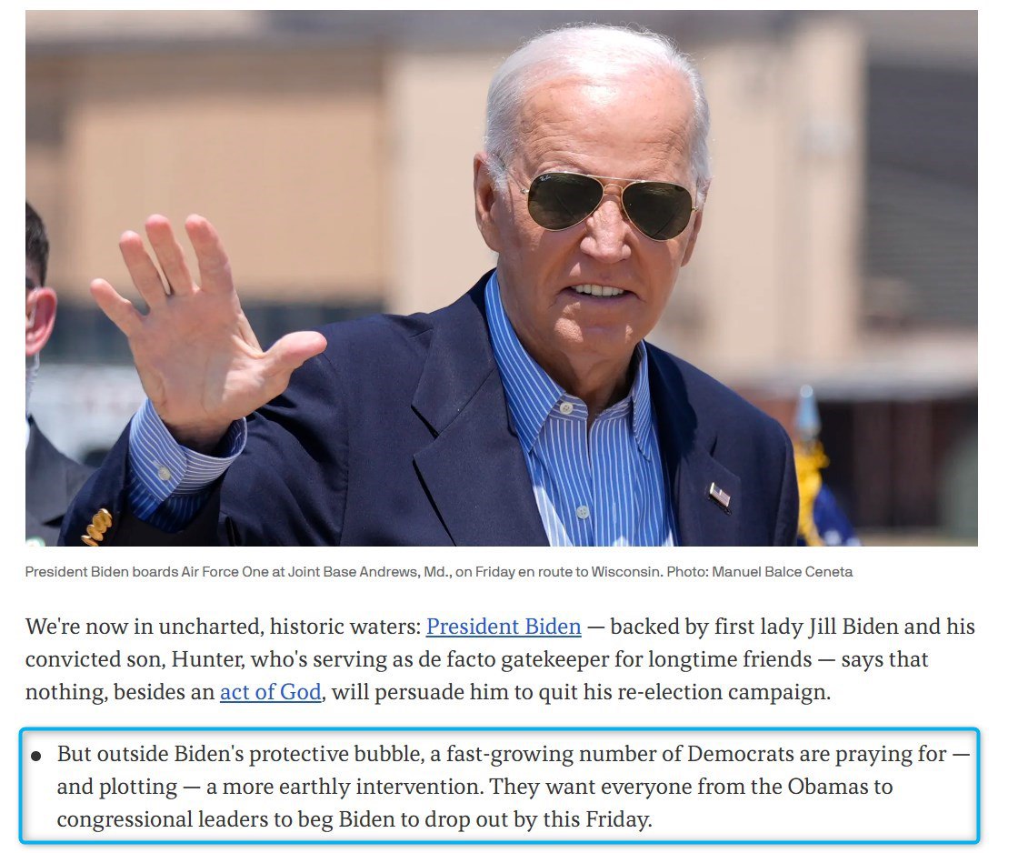 "Они хотят, чтобы все, от Обамы до лидеров Конгресса, умоляли Байдена отказаться от участия в выборах к этой пятнице", - пишет издание.