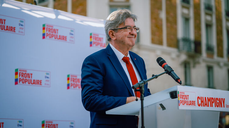 В левый блок входят четыре партии, одна из которых - "Непокоренная Франция" Жана-Люка Меланшона. Она выступает против Эмманюэля Макрона и его политики в отношении Украины, требуя заключить компромиссный мир между Украиной и Россией. Также Меланшон не менее жестко, чем Марин Ле Пен, выступает против отправки французских войск в Украину. В целом Меланшон резко критически относится к Макрону.