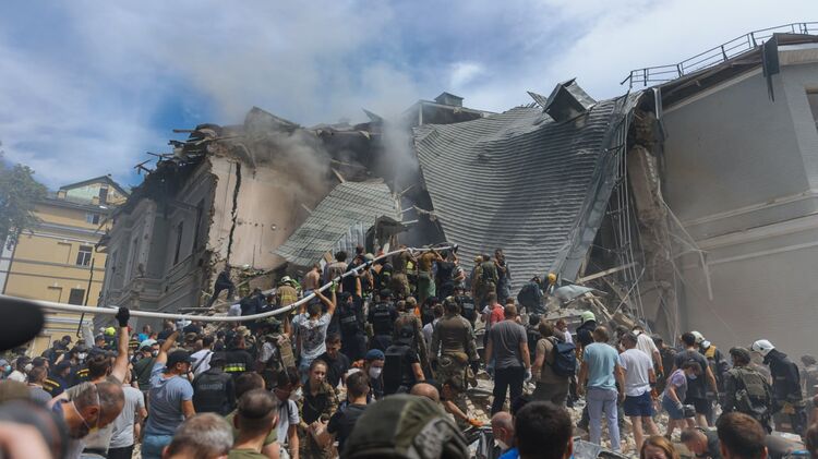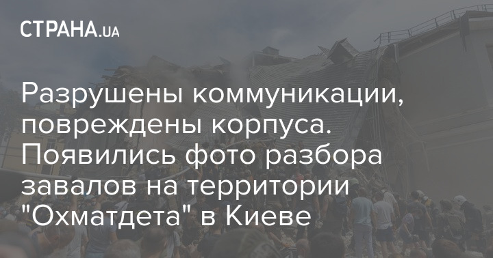 В сети появились свежие фото разбора завалов в киевской детской больнице "Охматдет", попавшей сегодня под ракетный удар.