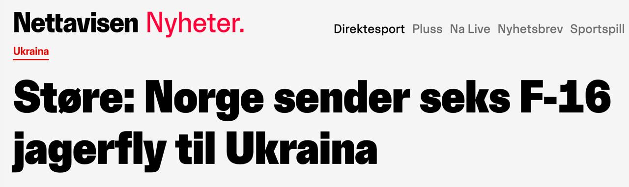 "Способность Украины защитить себя от атак с воздуха имеет решающее значение в ее оборонительной битве против России. Норвегия сейчас решила, что мы передадим Украине шесть истребителей F-16. Мы стремимся начать передачу в 2024 году", — заявил Стёре.