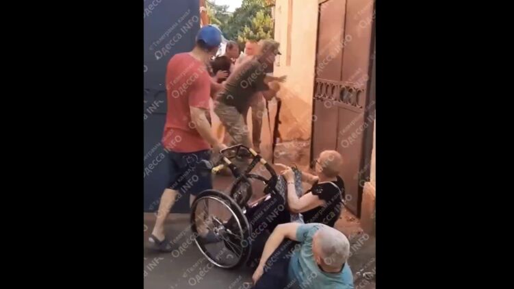 Возле военкомата в Белгород-Днестровском военный толкнул женщину. Фото: скрин