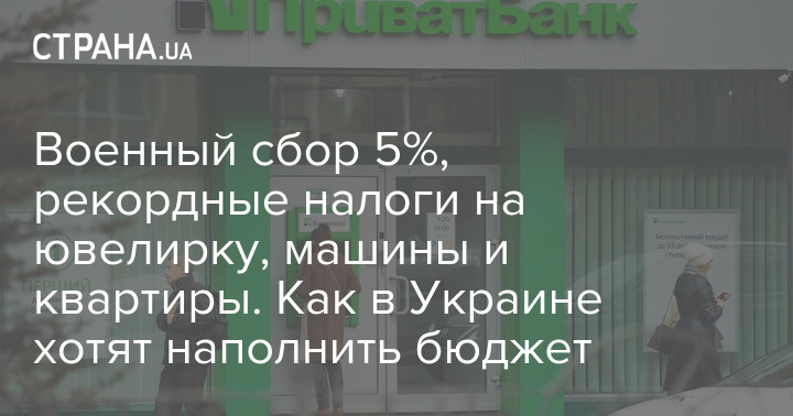 Военный сбор 5%, рекордные налоги на ювелирку, машины и квартиры. Как в Украине хотят наполнить бюджет