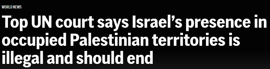 Международный суд ООН заявил, что оккупация палестинских территорий Израилем фактически является аннексией, он обязал покинуть эти территории как можно скорее и выплатить репарации за ущерб.