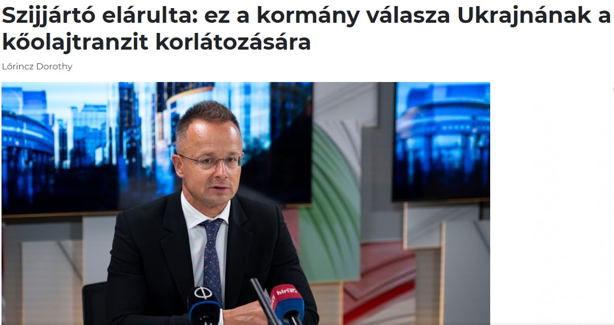 Глава венгерского МИД возмутился сложностями в транзите российской нефти через Украину в Венгрию и Словакию, энергоснабжение которых "оказалось под угрозой из-за действий украинцев".