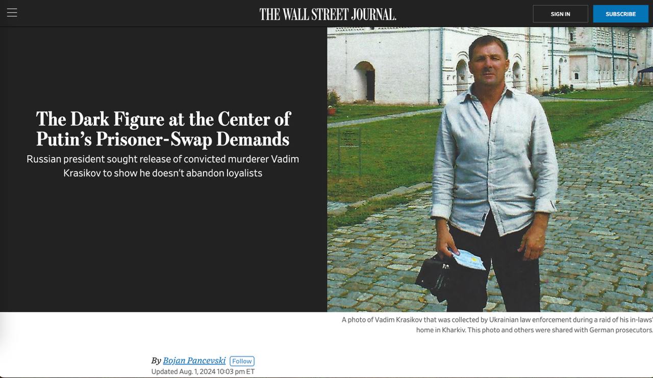 Главным условием Путина для обмена заключенными с Западом была выдача Вадима Красикова - WSJ