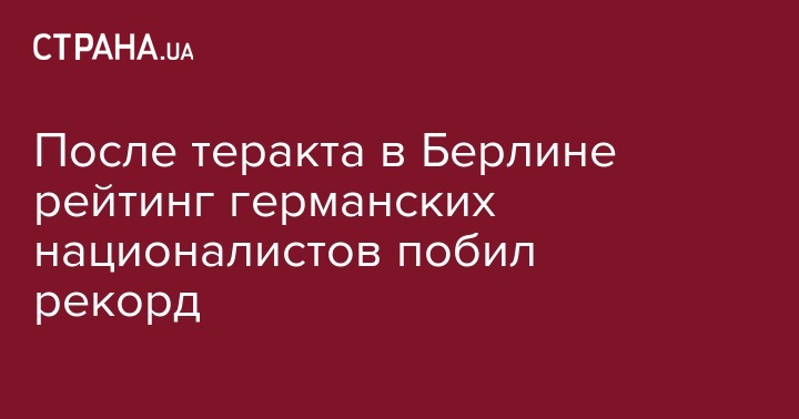 Популярность немецкой правопопулистской партии "Альтернатива для Германии" достигла годового рекорда после теракта на рождественской ярмарке на берлинской площади Брайтшайдплатц, где беженец на грузовике задавил 12 человек и травмировал более 40, сообщает в пятницу, 23 декабря, газета Bild.