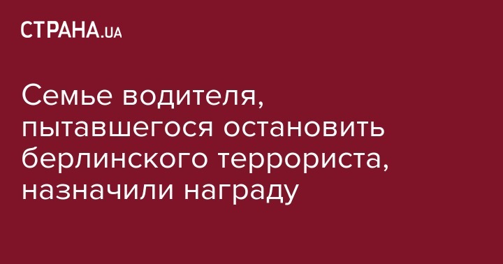 Семье водителя, пытавшегося остановить берлинского террориста, назначили награду