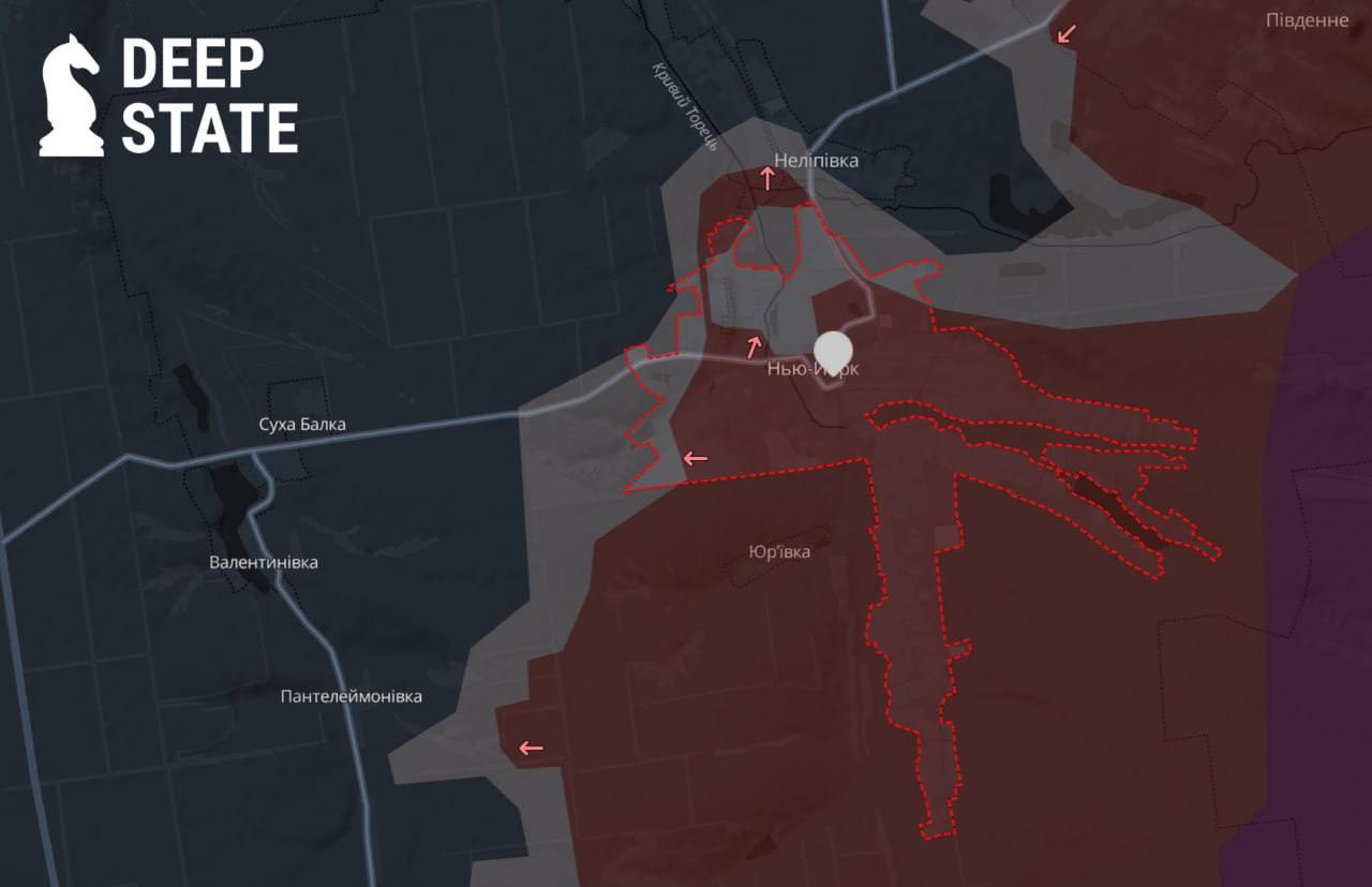 "В поселке сложилась уникальная ситуация, когда происходит хаос с обеих сторон", - пишет паблик. По его данным, в последние дни россияне обходят позиции ВСУ и пытаются сконцентрироваться в Нелиповке. Таким образом РФ пытается не захватить Нью-Йорк, а обойти его.