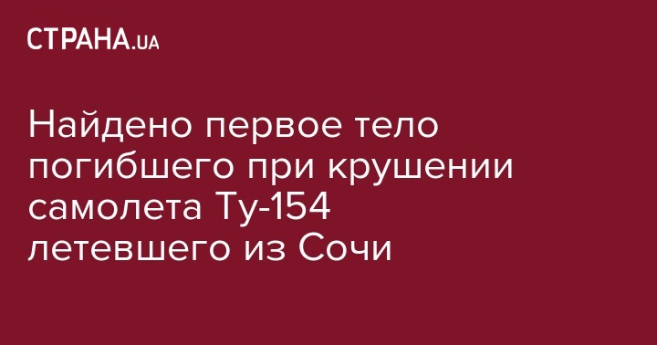 В Минобороны РФ подтвердили, что в районе крушения самолёта Ту-154 найдено тело погибшего.