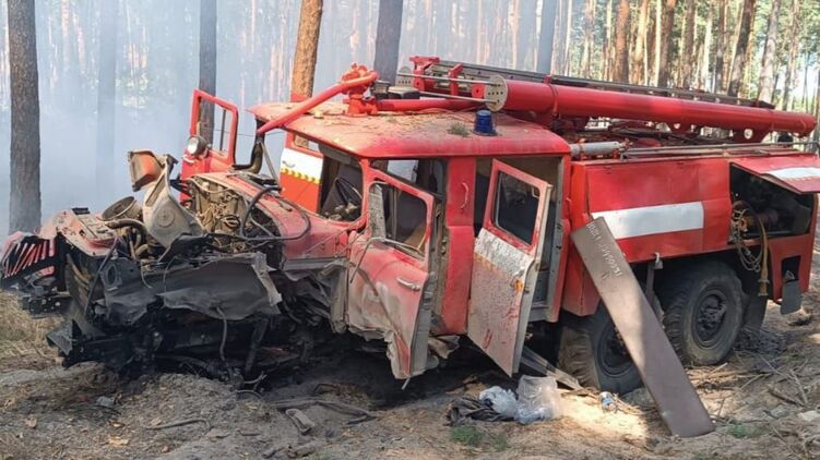 На деоккупированной части Харьковской области автомобиль пожарной бригады подорвался на мине во время тушения лесного пожара. Ранены двое спасателей.