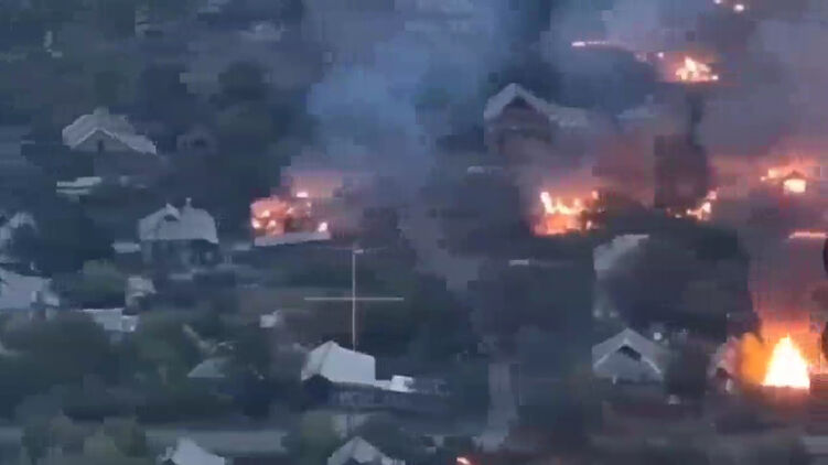 В Торецке под массированный удар попала частная жилая застройка – не менее семи домохозяйств охвачены пламенем. В отдельных домах заметны разрушения.