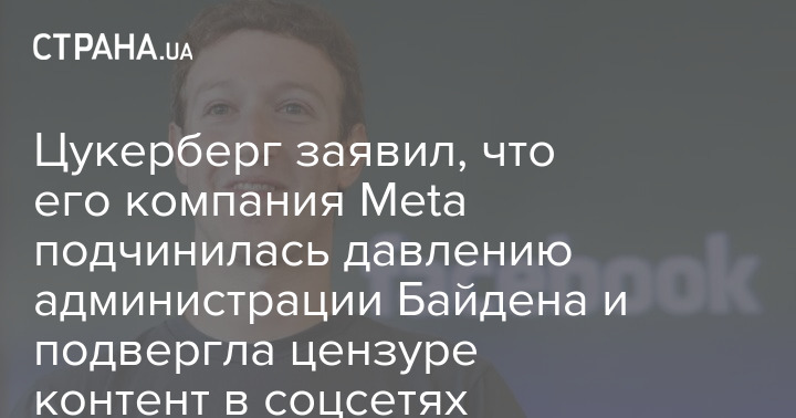 Американский медиамагнат Марк Цукерберг заявил, что его компания Meta (Facebook и Instagram) подчинилась давлению администрации президента США Джо Байдена во времена пандемии Covid-19 и подвергла цензуре определенный контент в соцсетях, включая юмор и сатиру.