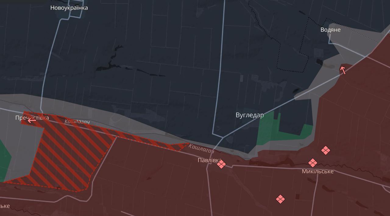 07:59 Российские войска продвинулись у Пречистовки к западу от Угледара. А также расширили серую зону в районе Водяного к северо-востовку.
