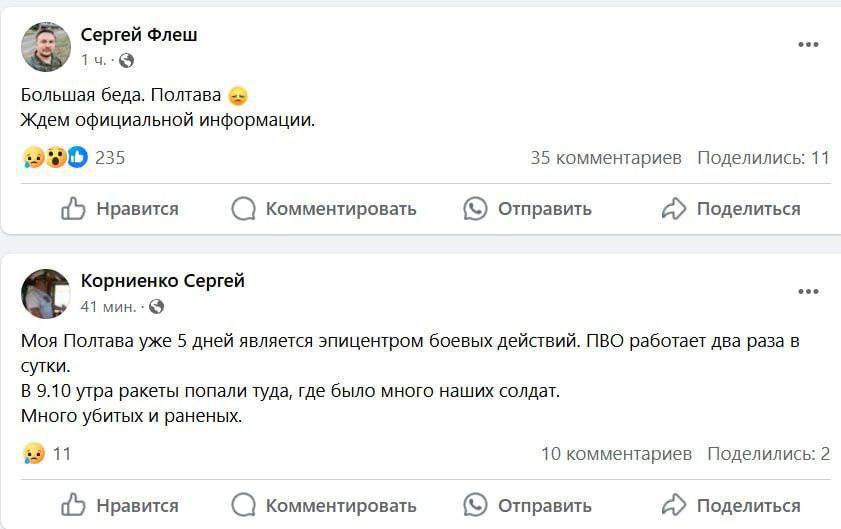20:45 В Полтаве во время ракетного удара по военному учебному заведению в Полтаве не было никаких построений.