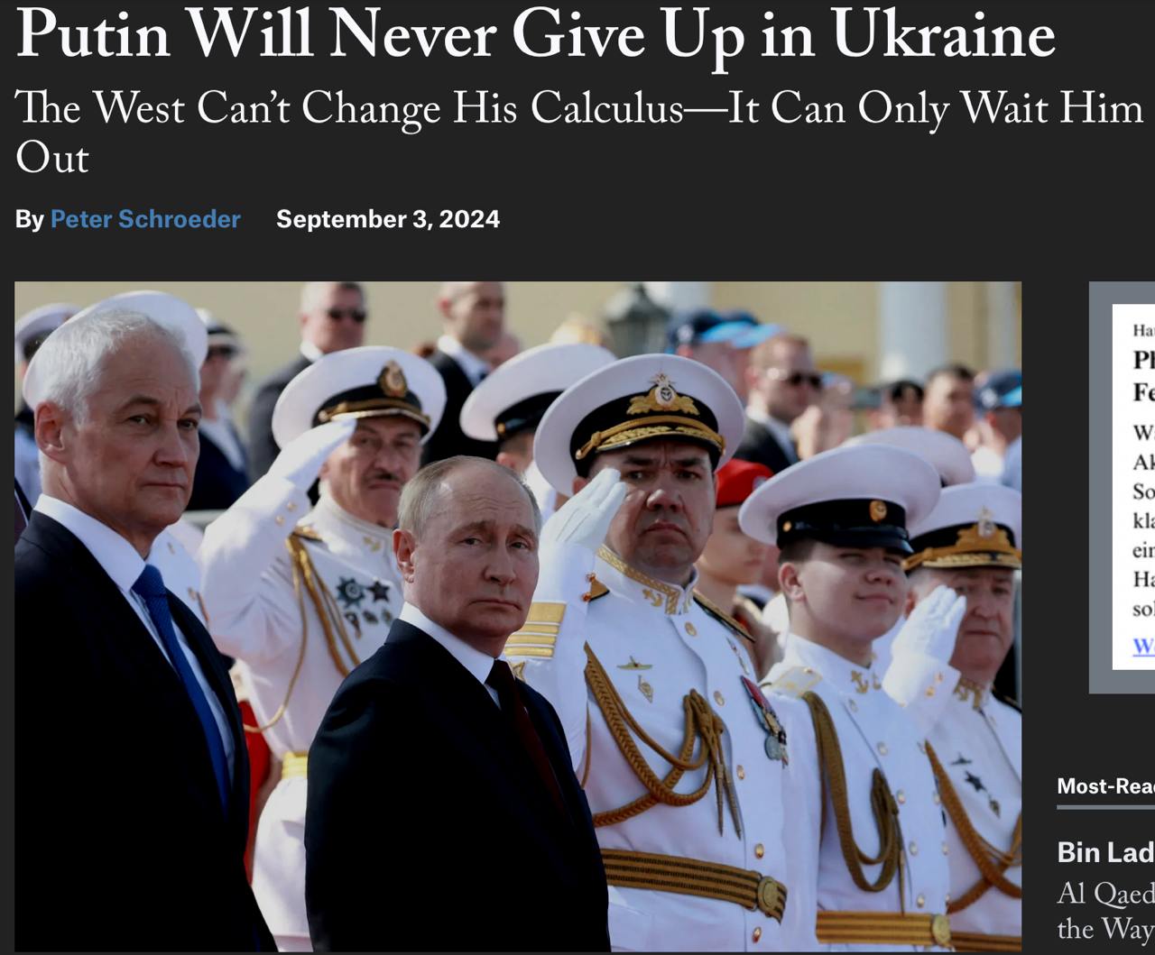 Автор в связи в этим советует западным странам "дождаться ухода Путина", а пока он не ушел, помогать Украине выстоять, сведя к минимуму уровень боевых действий и количество затрачиваемых ресурсов. Более того, Вашингтон должен убедить Киев избегать "крупных, расточительных наступлений", как в Курской области, поскольку они только истощают резервы ВСУ, не обеспечивая прорыв.