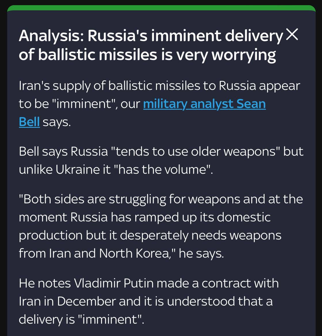 Ранее агентство Bloomberg со ссылкой на европейских чиновников писало, что Иран "неизбежно" поставит России баллистические ракеты. Источники отказались назвать объемы или сроки поставок, но один из чиновников сказал, что поставки могут начаться в течение нескольких дней. Теперь в странах "Большой семерки" обсуждают усиление санкций против Ирана, но признают, что они могут не оказать должного эффекта.