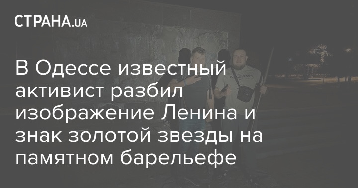 В Одессе местный активист Демьян Ганул разбил изображение Ленина и знак золотой звезды на памятном барельефе.