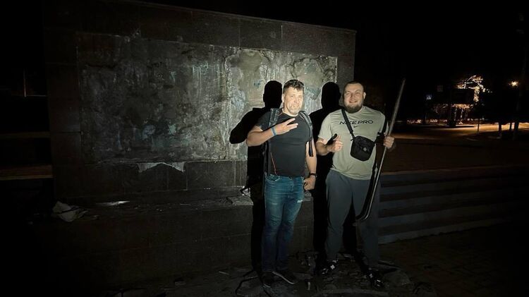 Одесские активисты после уничтожения барельефа. Фото: Телеграм