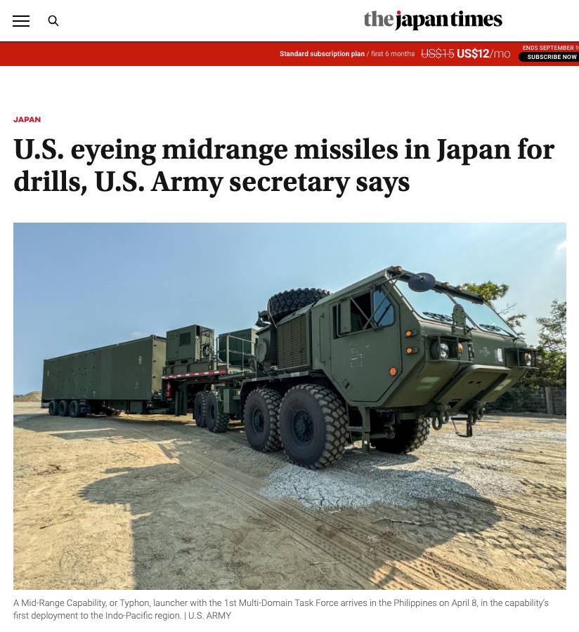 США разместят в Японии ракетные комплексы, ранее запрещенные по российско-американскому договору о ликвидации ракет средней и малой дальности.