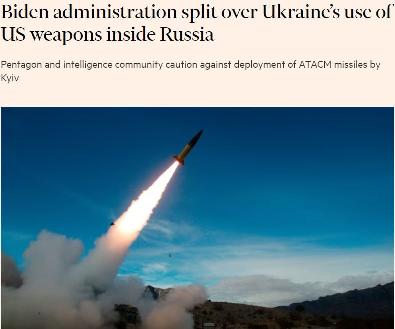 В администрации Джо Байдена наблюдается раскол по поводу возможного разрешения Киеву на удары американским оружием вглубь территории России.