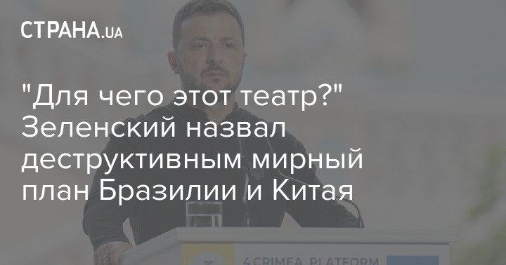 Владимир Зеленский раскритиковал и назвал деструктивным мирный план Бразилии и Китая, предлагающий сценарий завершения войны в Украине.