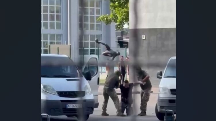 В ролике можно заметить, что военкомы применяют физическую силу к мужчине.