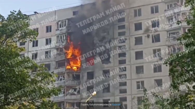 Россияне ударили по многоэтажке в Харькове. Фото: скрин