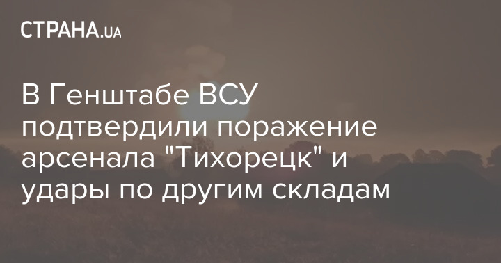 В Генштабе ВСУ подтвердили поражение арсенала "Тихорецк" и удары по другим складам