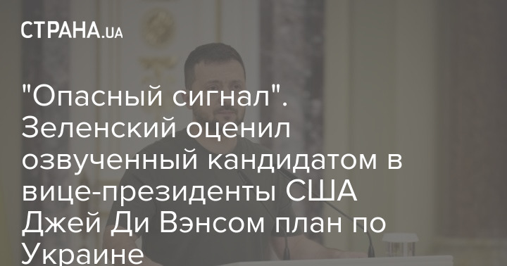 "Опасный сигнал". Зеленский оценил озвученный кандидатом в вице-президенты США Джей Ди Вэнсом план по Украине