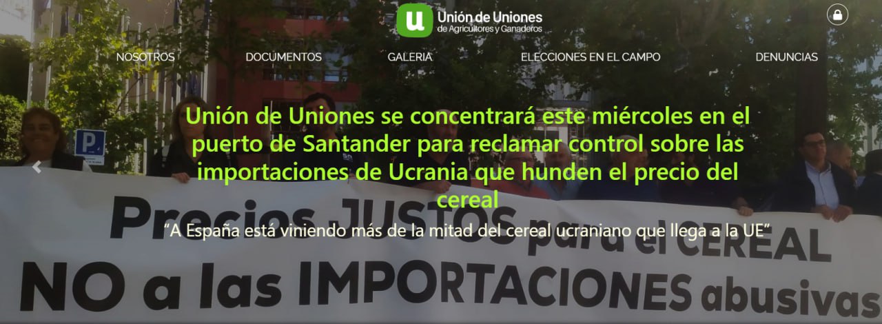 Согласно сообщению, около тридцати испанских производителей зерновых и животноводов собрались сегодня перед представительством Европейской комиссии в Мадриде на "митинг против чрезмерного импорта зерновых из Украины", чтобы попросить Брюссель принять антидемпинговые меры в отношении украинских зерновых культур.