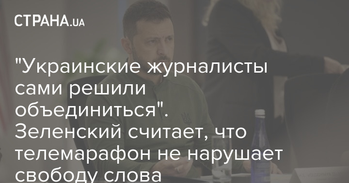 Президент Владимир Зеленский заявил, что украинские журналисты сами решили объединиться для вещания в формате единого телемарафона, чтобы бороться с дезинформацией.